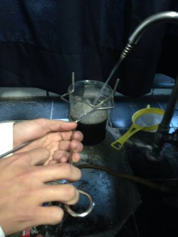 4.- Temperatura de difucion. Sobre una espátula coloca cristales de cada una de las sales, separados aproximadamente 2 cm. Coloca la espátula sobre la flama del mechero y espera unos dos minutos.